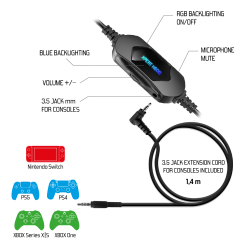 Télécommande intégrée Filaire avec contrôle du Volume +/- et Mute Micro Port Jack 3,5 mm pour brancher le câble inclus à votre consoles (Nintendo Switch / PS5 / PS4 / Xbox Series X et S / XBOX One
